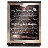 Keep up to 58 standard-size bottles of wine properly chilled with this attractive wine cooler. Its wire shelves securely cradle anything from light red or full red to white, rose, or sparkling wine and champagne, while a user-friendly digital display with push-button operation makes it easy to control the temperature setting. Best of all, multiple zones inside the unit chill reds and whites at different temperatures, without the need for space-consuming zone separators. Simply place whites towards the bottom for colder temperatures and reds toward the less-chilled top. The appliance also provides a thermal-pane glass door with a lock, plus an interior light that can be turned on to help find a specific bottle or to simply showcase the assortment. Furthermore, its design includes a front-venting exhaust system, which allows it to be built in as an under-the-counter appliance or as a freestanding unit. The wine cooler works well in a kitchen, game room, or bar area, but should not be placed in a garage due to extreme outside temperatures. Housed in a black cabinet with a stainless-steel door handle and trim, the wine cooler measures 24 by 24 by 34-1/2 inches.Want to learn more information about Vinotemp VT-WC58GNV-SB 58-Bottle Multi-Zone Wine Cooler with Digital Display?